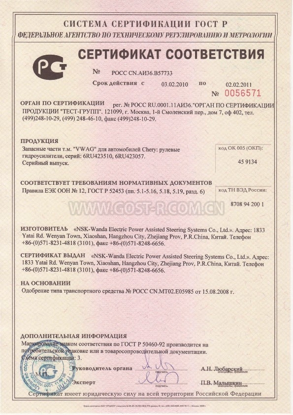 Certificate of conformity GOST R(also known as quality certificate, State Standard Certificate, clearance certificate, GOST R certificate and etc.) - is a document, issued in accordance with the rules of certification system in order to confirm correspondence of quality and safety of certified products (services) to the stated requirements, applicable standards (GOST, GOST R, GOST R IEEC, GOST R ISO and etc.). Certification of products (services) may be obligatory and voluntary.