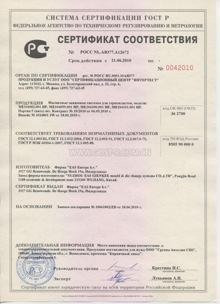 Сертификат соответствия ГОСТ Р Certificate of Conformity (CU-TR)Certificate of Conformity in CU-TR system affirms that the goods delivered in Russia, and/or production line where they were manufactured, conform to the Russian Safety Standards.