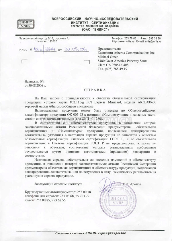 Сертификат cоответствия ГОСТ Р